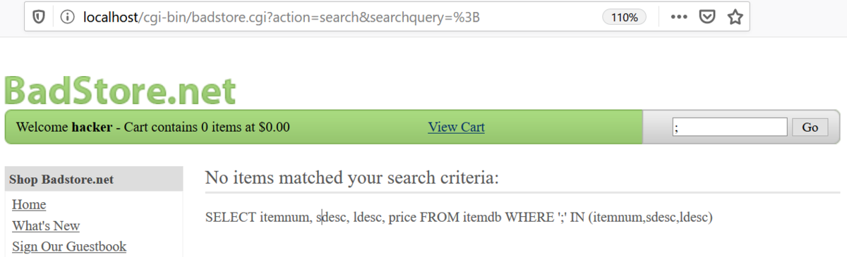 画面右上の検索キーに特殊記号『;』を入れて検索するとカラム名が漏洩。
