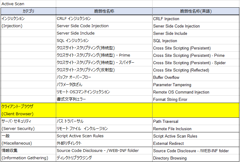 Burp Suiteにつづいて、OWASP ZAPでも検出機能の一覧を。