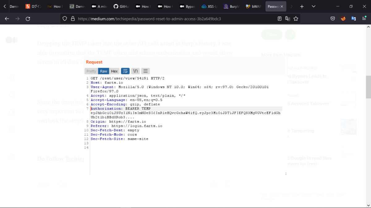 Burp Suiteの履歴に保存されている他のAPI呼び出しに使用している。